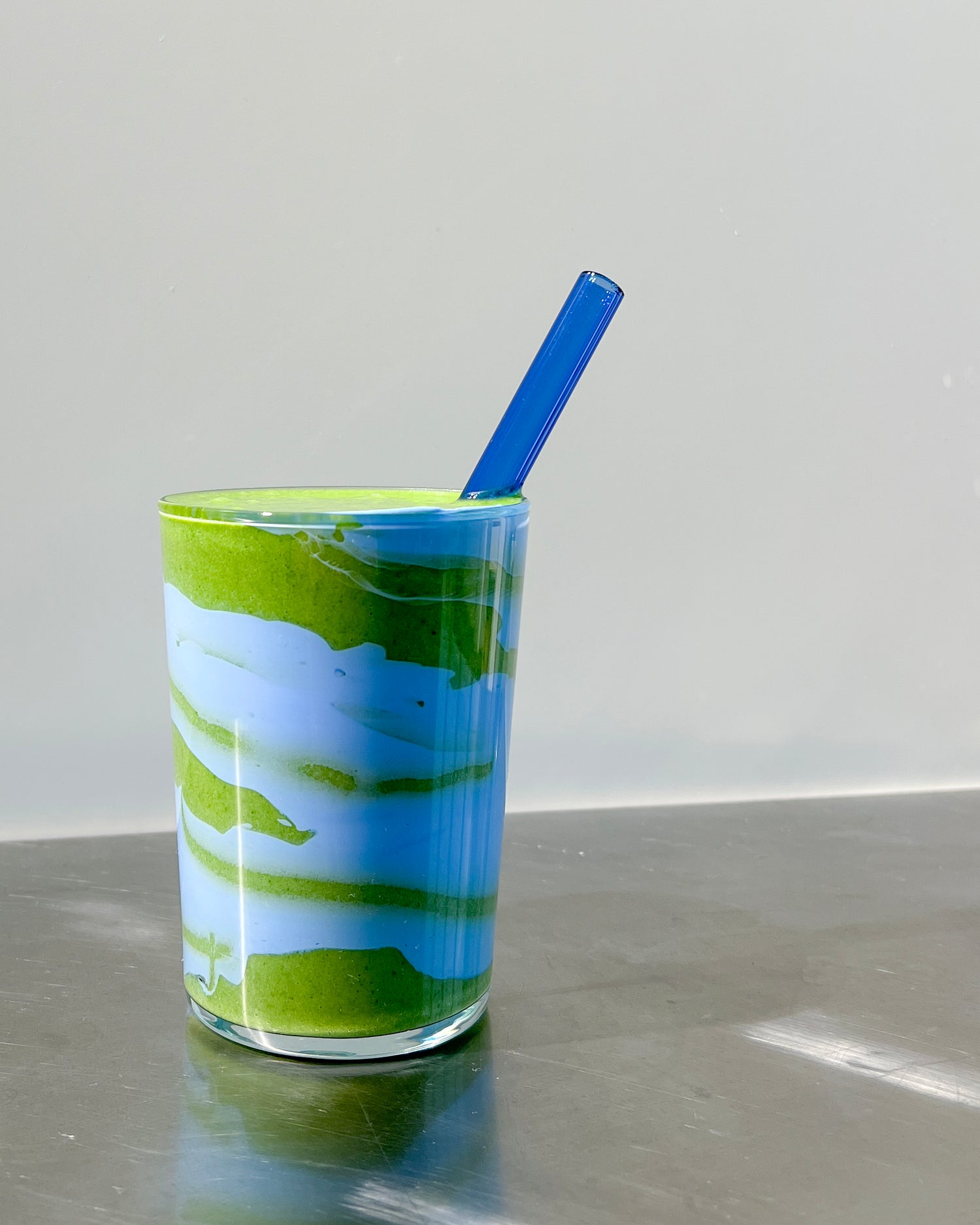 1. Spoon the Blue Spirulina Yogurt on the inside of the cup